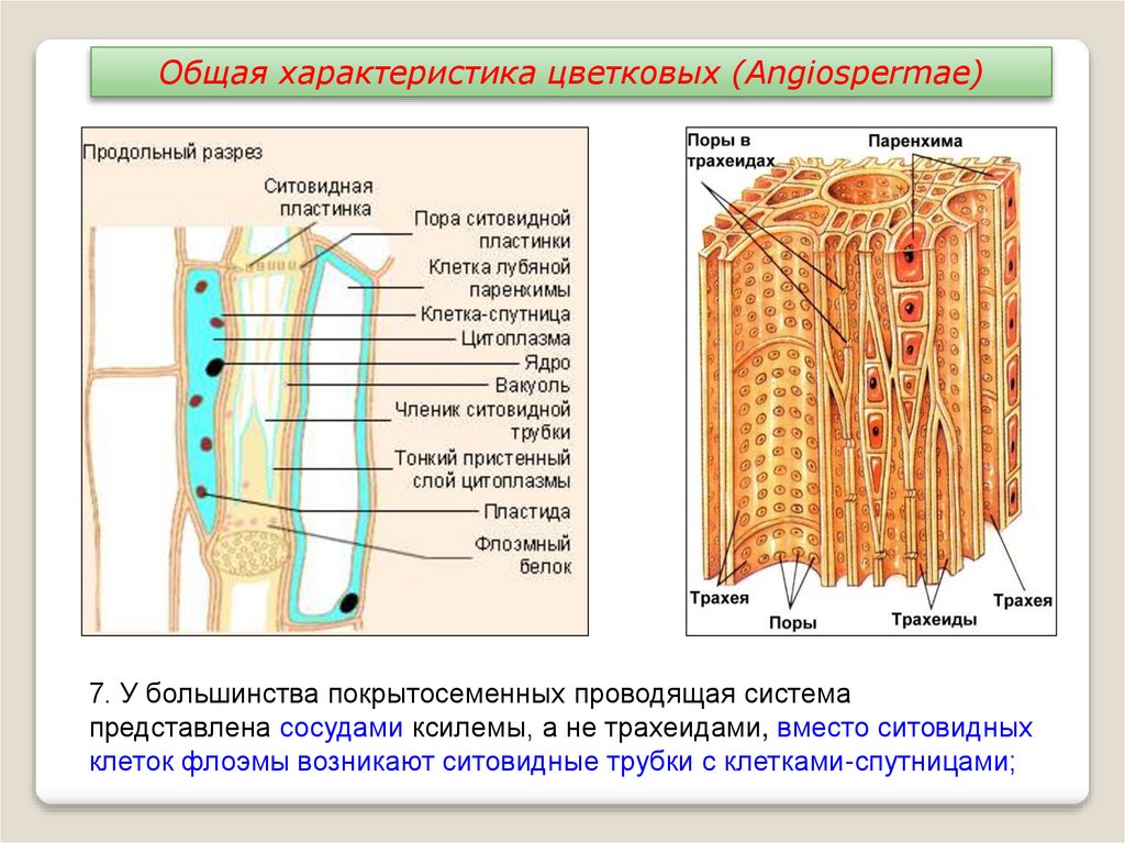 Общая характеристика цветковых (Angiospermae)7. У большинства покрытосеменных проводящая система