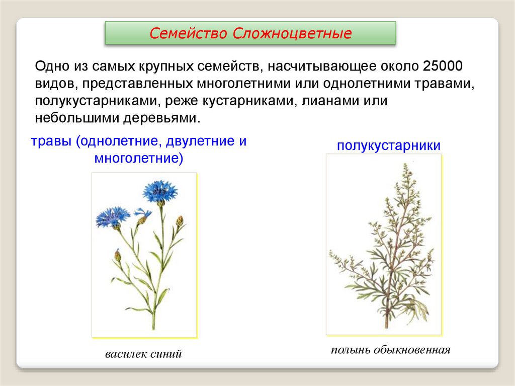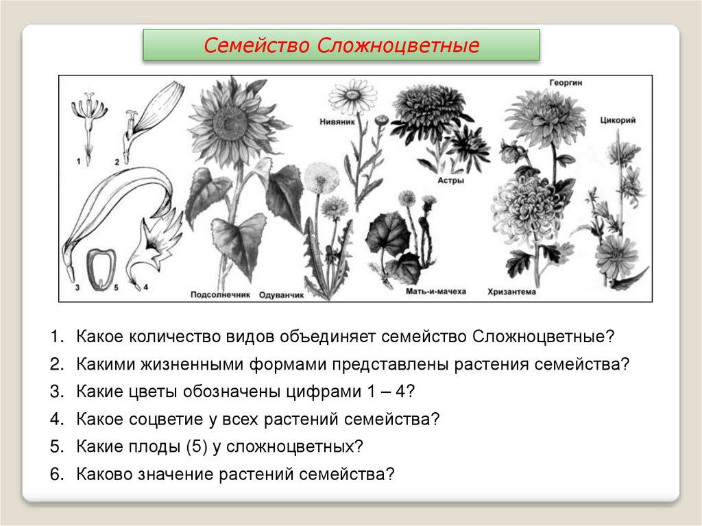 Семейство Сложноцветные1. Какое количество видов объединяет семейство Сложноцветные?