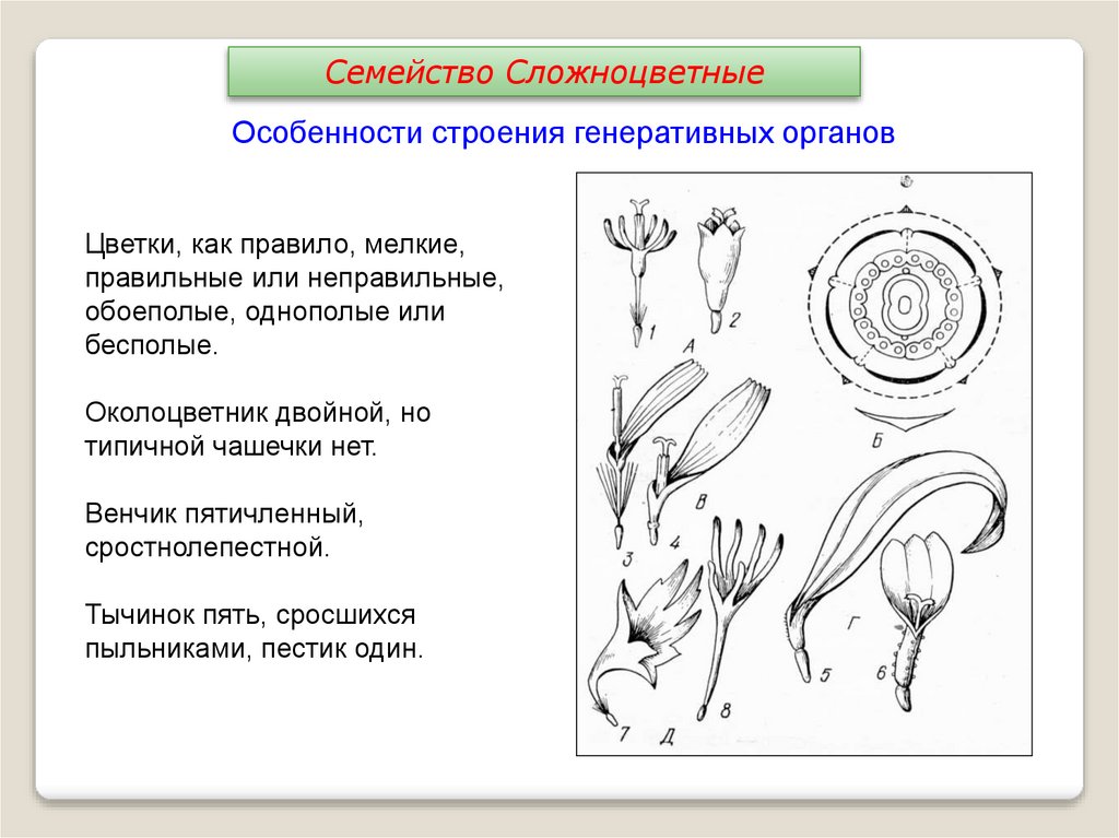 Семейство СложноцветныеОсобенности строения генеративных органов