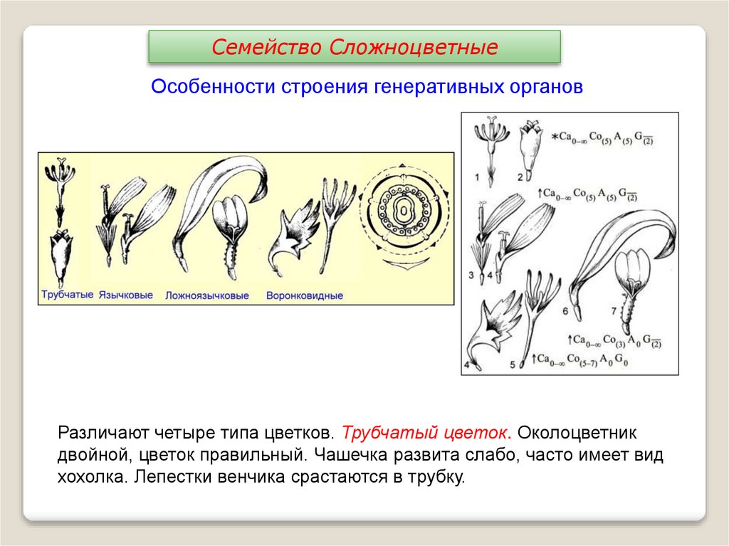 Различают четыре типа цветков. Трубчатый цветок. Околоцветник