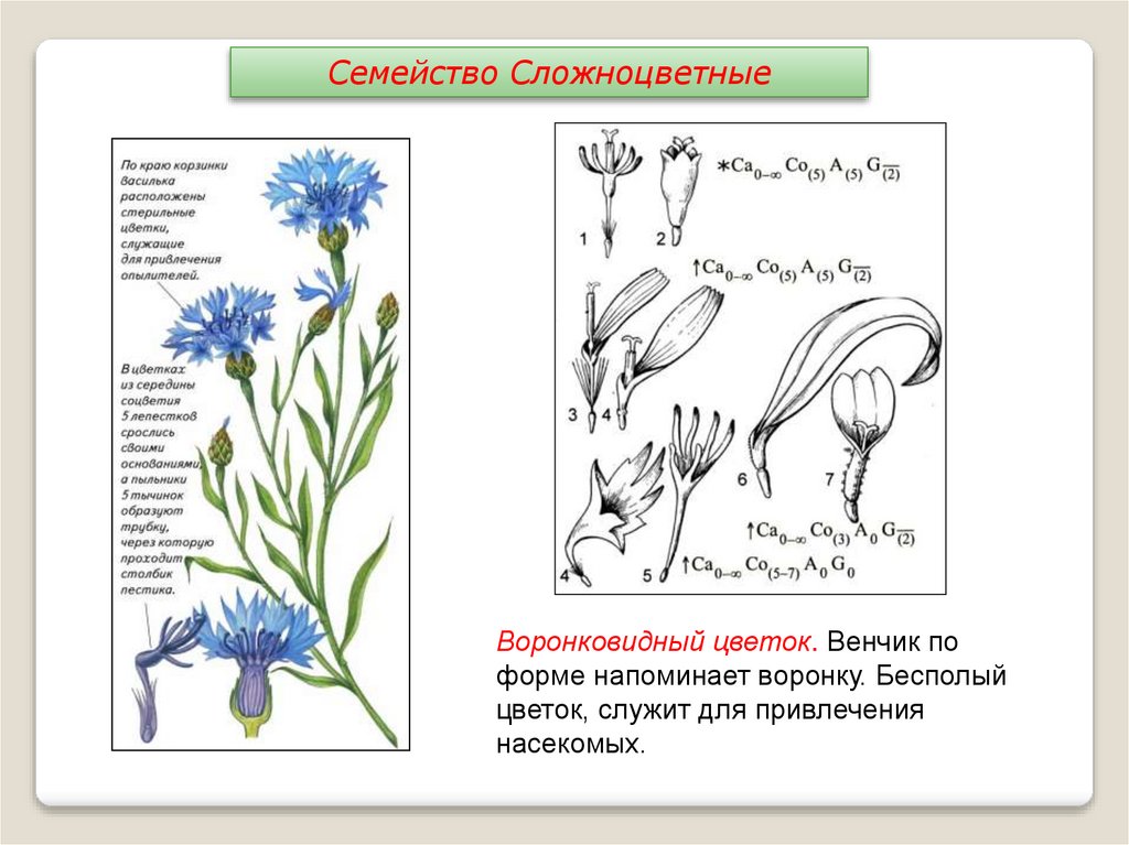 Семейство СложноцветныеВоронковидный цветок. Венчик по
