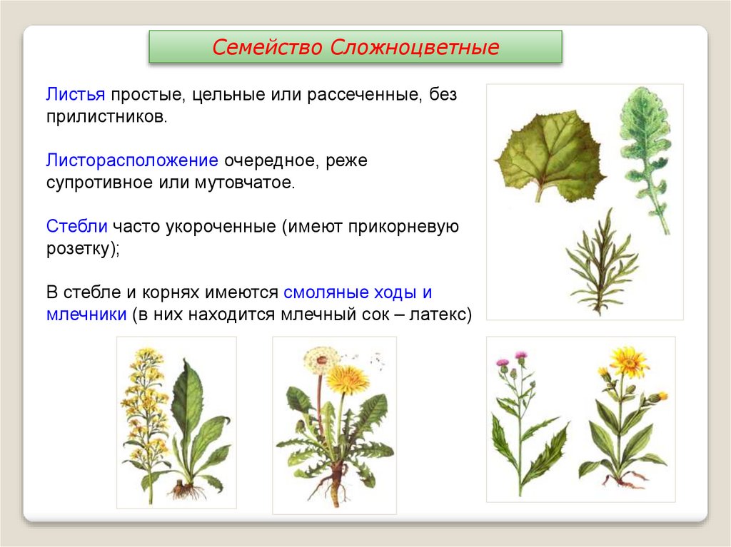 Семейство СложноцветныеЛистья простые, цельные или рассеченные, без