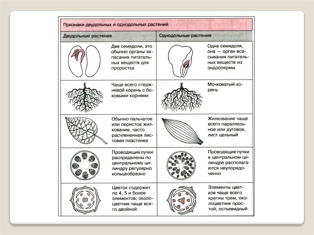 Важнейшие отличительные признаки однодольных и двудольных: