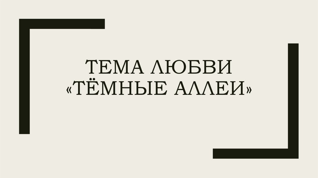 ТЕМА ЛЮБВИ«ТЁМНЫЕ АЛЛЕИ»