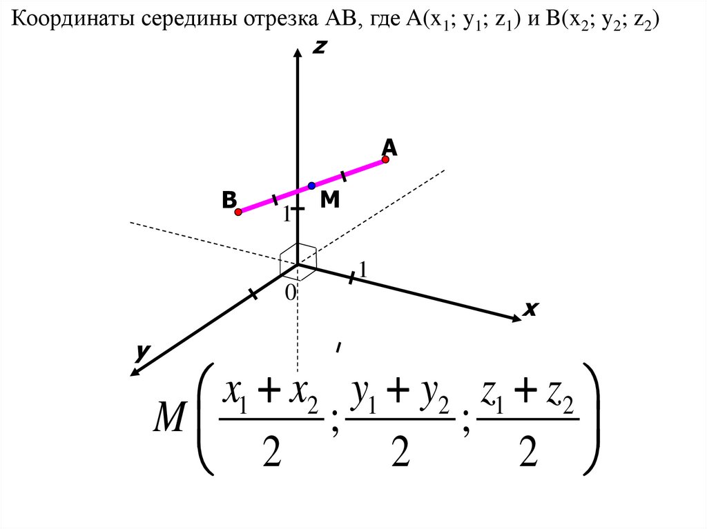 Найдите координаты середины отрезка: а) AB, если A(1, 2, 3) иB(-1, 0, 1); б) CD, если C(3, 3, 0) и D(3, -1, 2).