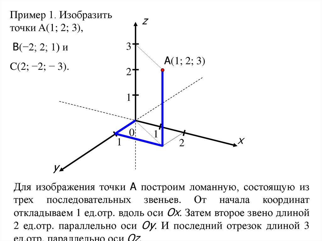 Пример 1. Изобразитьточки A(1; 2; 3),
