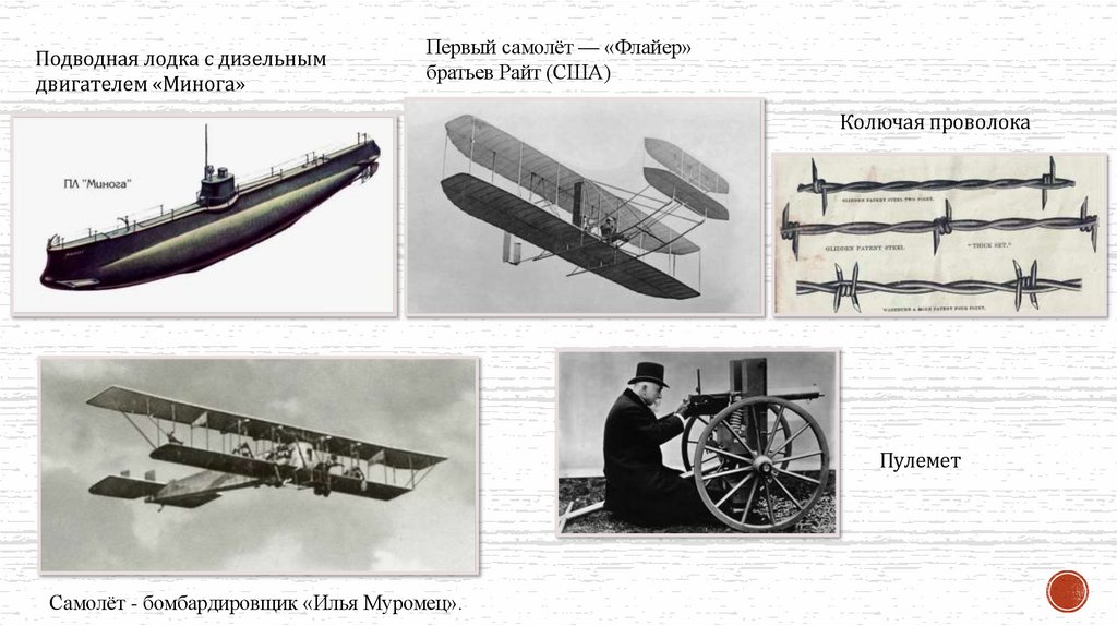 В 1884 г. американцем Х. Мáксимом было изобретено скорострельное оружие — пулемёт. В ряде странначалось строительство подводного флота.