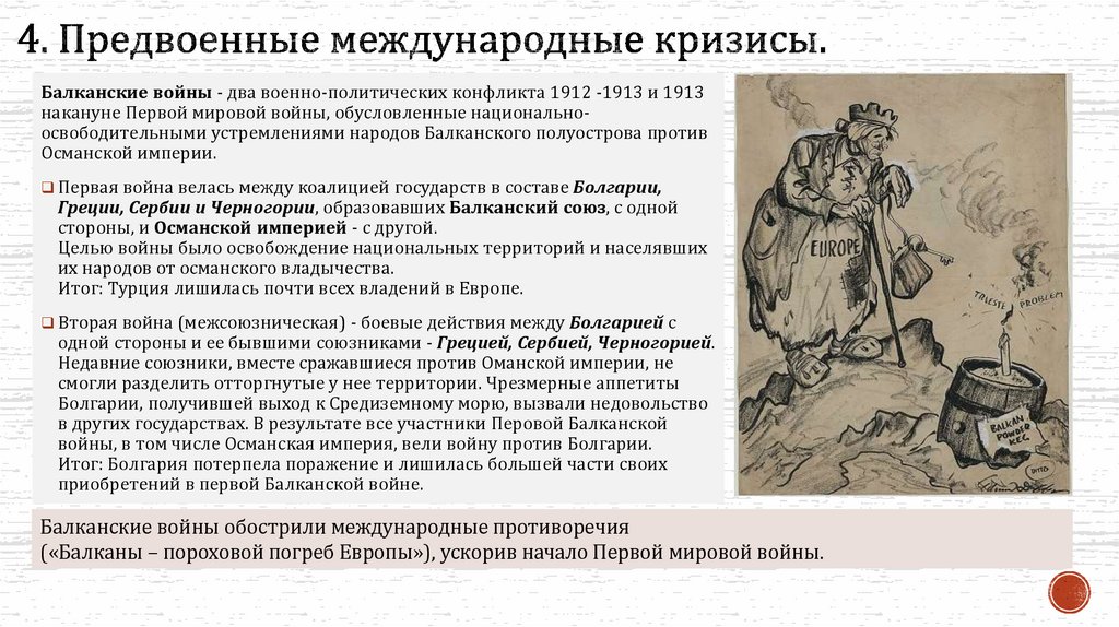 («Балканы – пороховой погреб Европы»), ускорив начало Первой мировой войны.