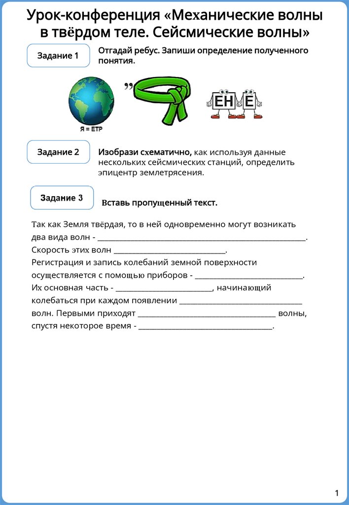 Урок-конференция «Механические волныв твёрдом теле. Сейсмические волны»