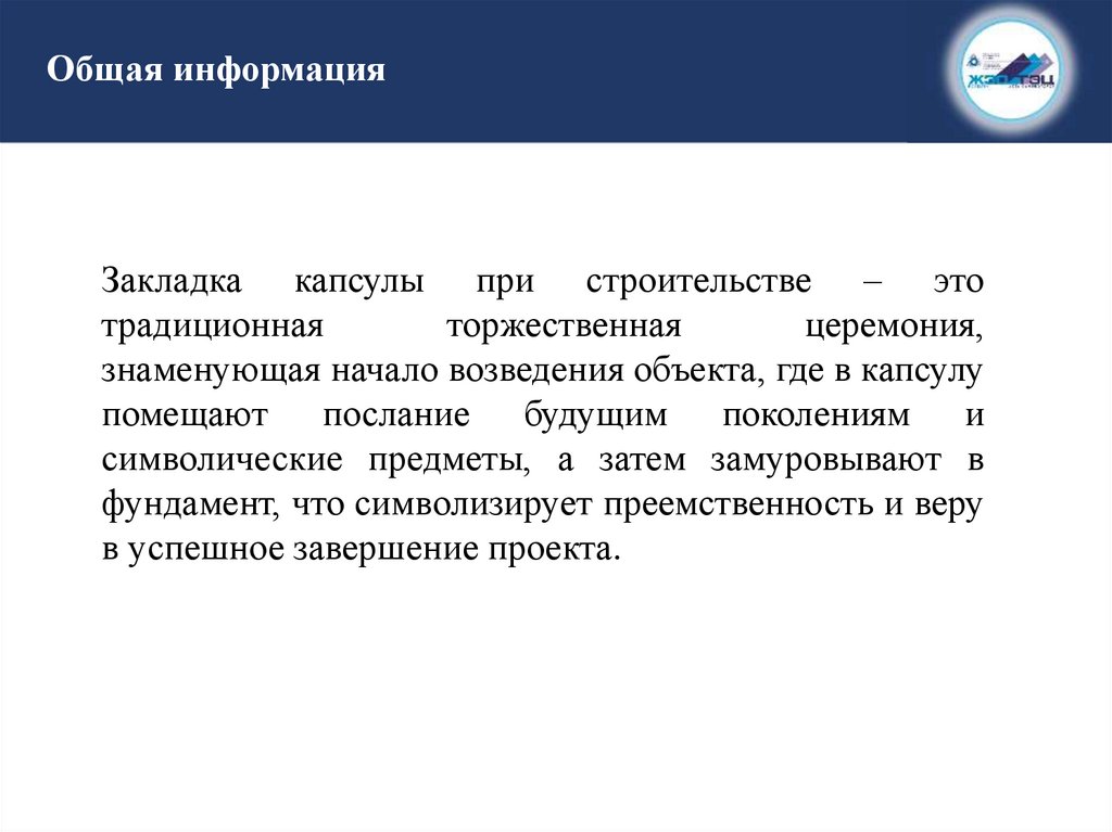 знаменующая начало возведения объекта, где в капсулу