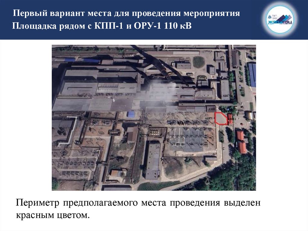 Первый вариант места для проведения мероприятияПлощадка рядом с КПП-1 и ОРУ-1 110 кВ