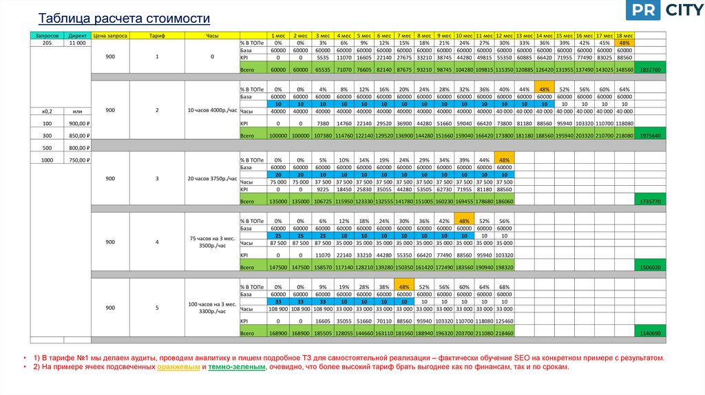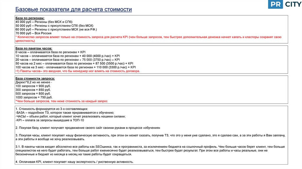 3.1. В пакеты часов входят абсолютно все работы как SEOшника, так и программиста, за исключением бюджета на ссылочный профиль. Чем больше часов берет клиент, тем больше