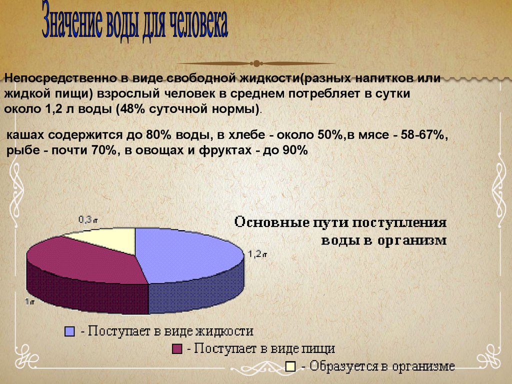 Непосредственно в виде свободной жидкости(разных напитков илижидкой пищи) взрослый человек в среднем потребляет в сутки