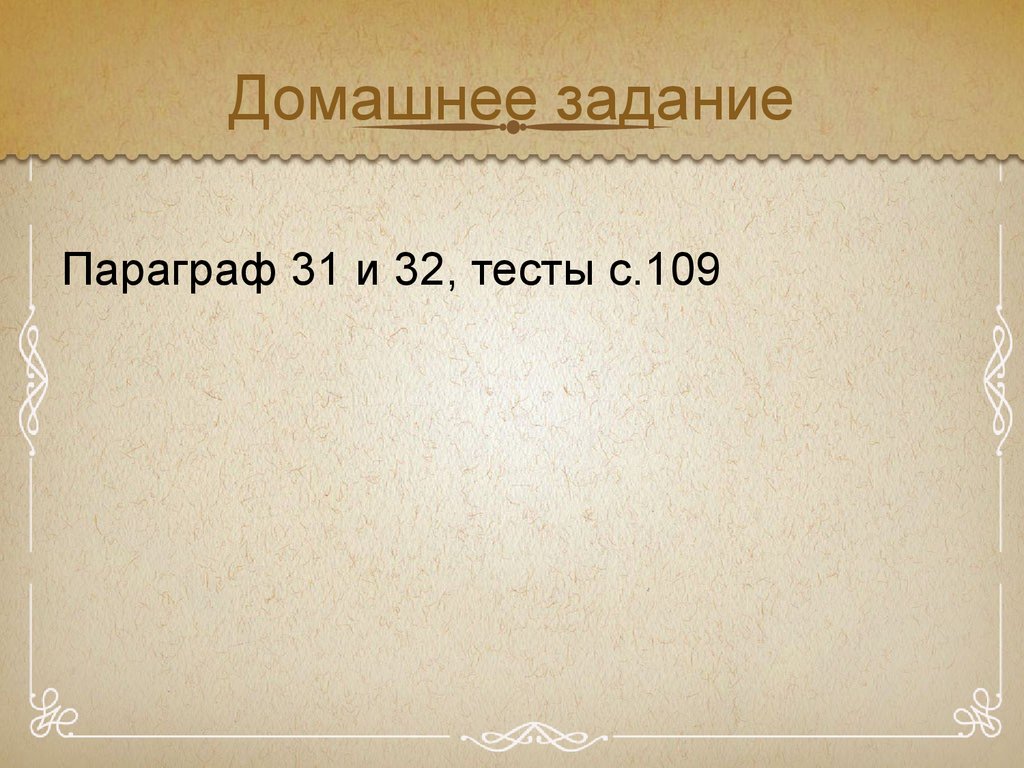 Домашнее заданиеПараграф 31 и 32, тесты с.109
