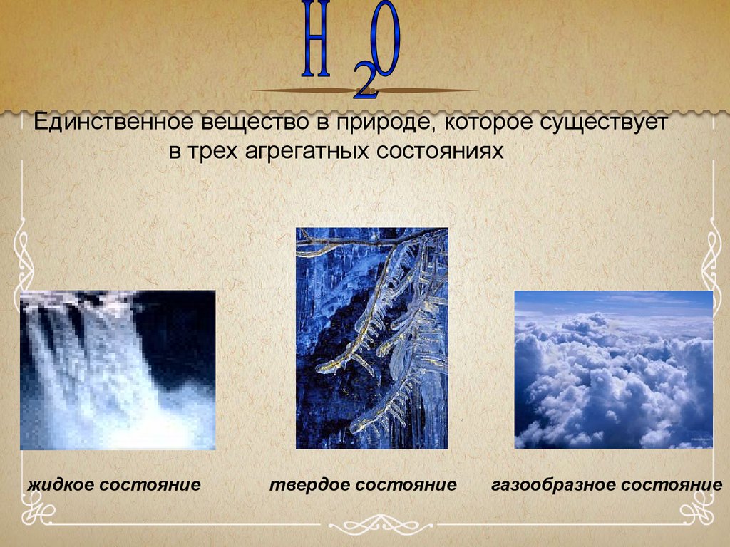 Единственное вещество в природе, которое существуетв трех агрегатных состояниях