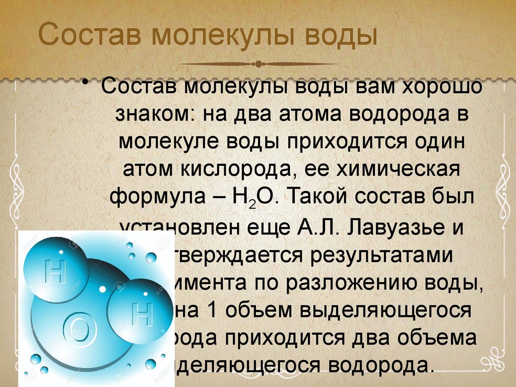 Состав молекулы воды• Состав молекулы воды вам хорошо