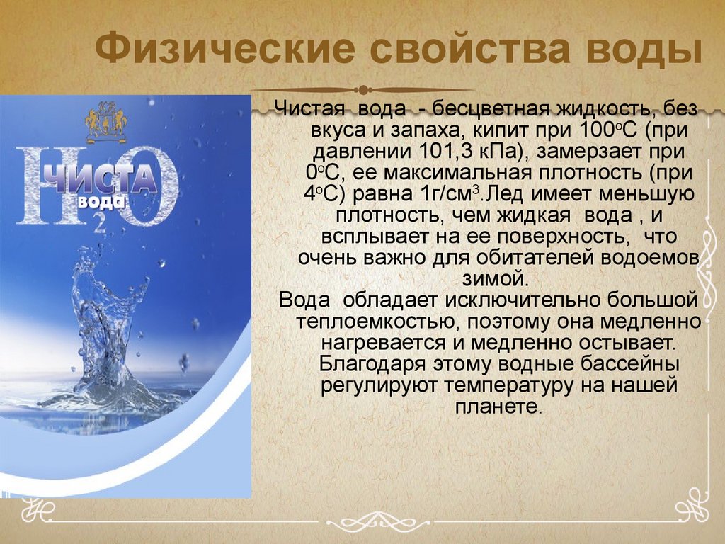 Физические свойства водыЧистая вода - бесцветная жидкость, без