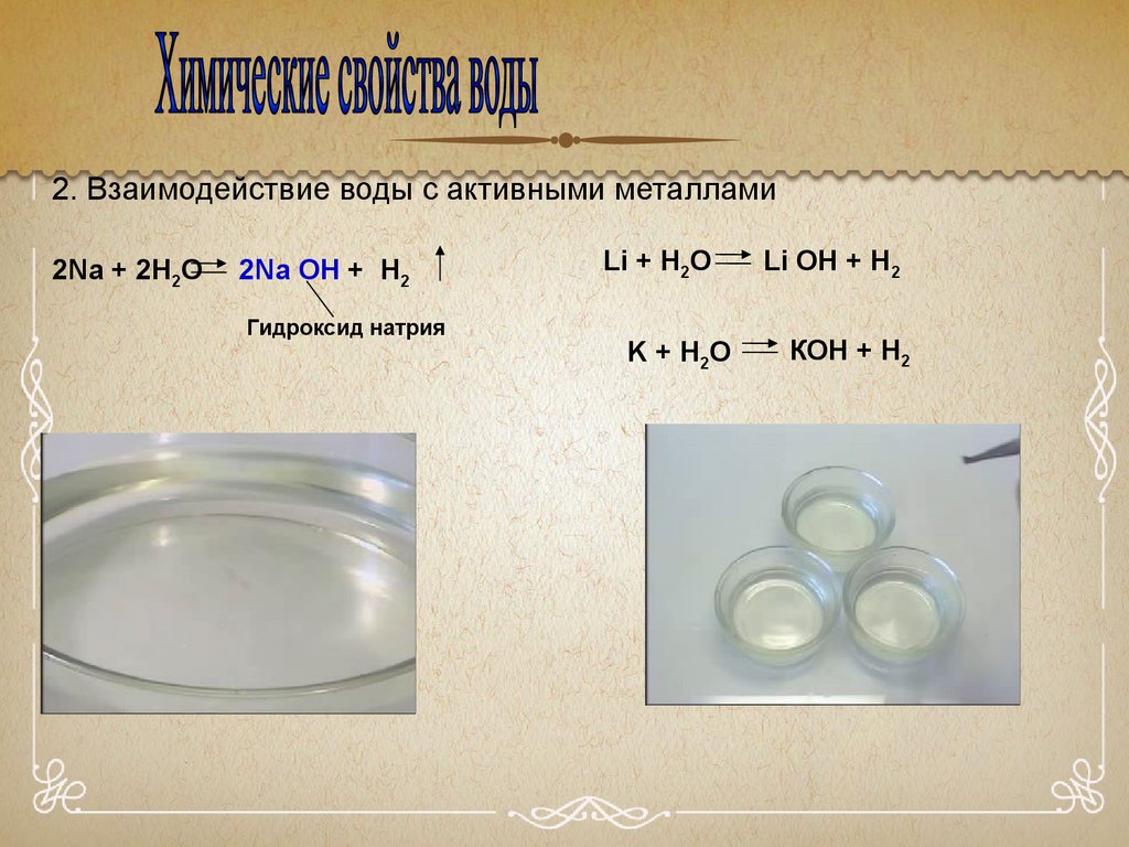 2. Взаимодействие воды с активными металлами2Na + 2H2O