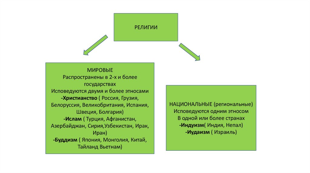 • Религия – совокупность представлений и действий,основывающихся на вере в сверхъестественные силы,