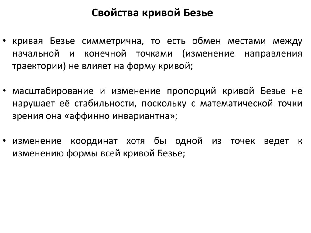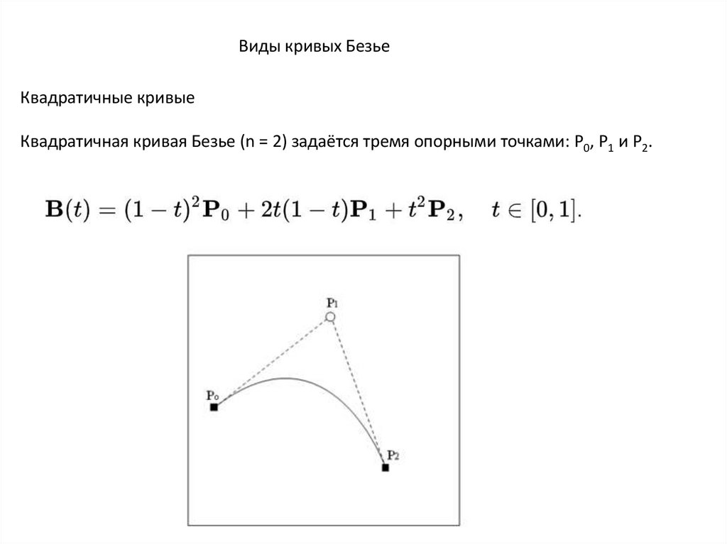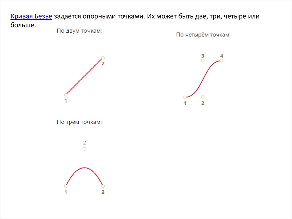 Кривая Безье задаётся опорными точками. Их может быть две, три, четыре илибольше.