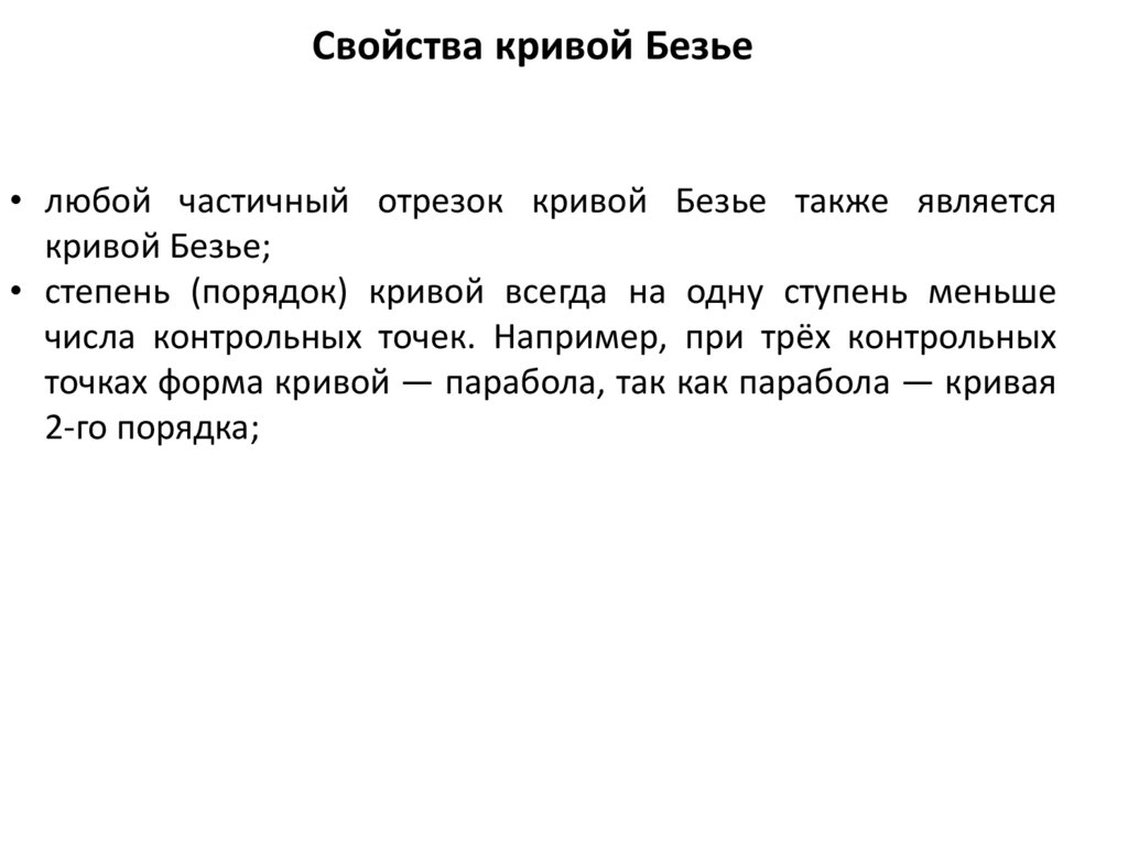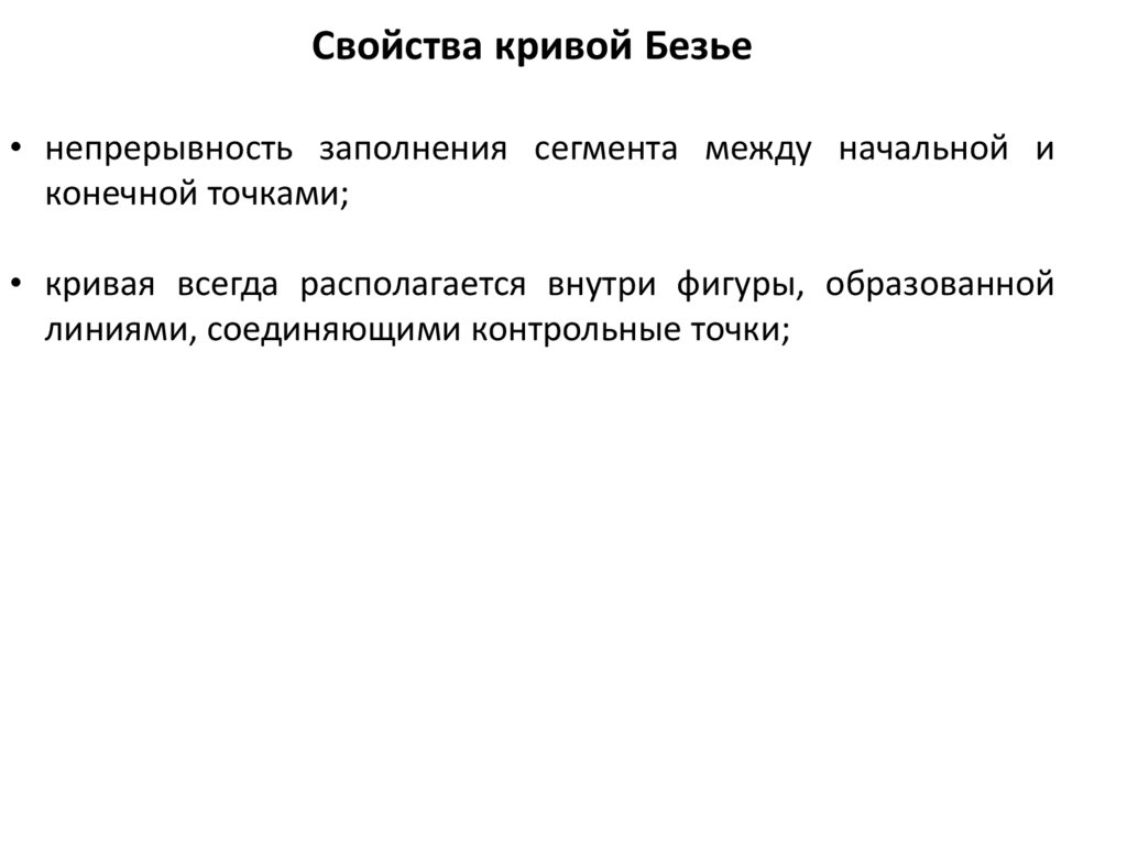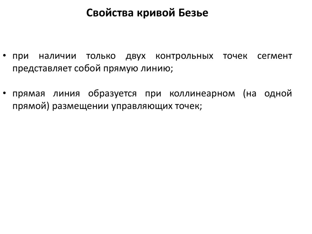 Свойства кривой Безье• при наличии только двух контрольных точек сегмент