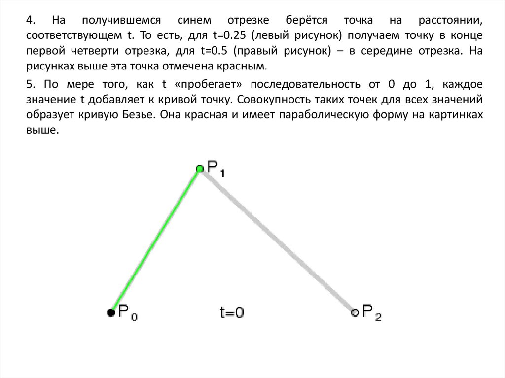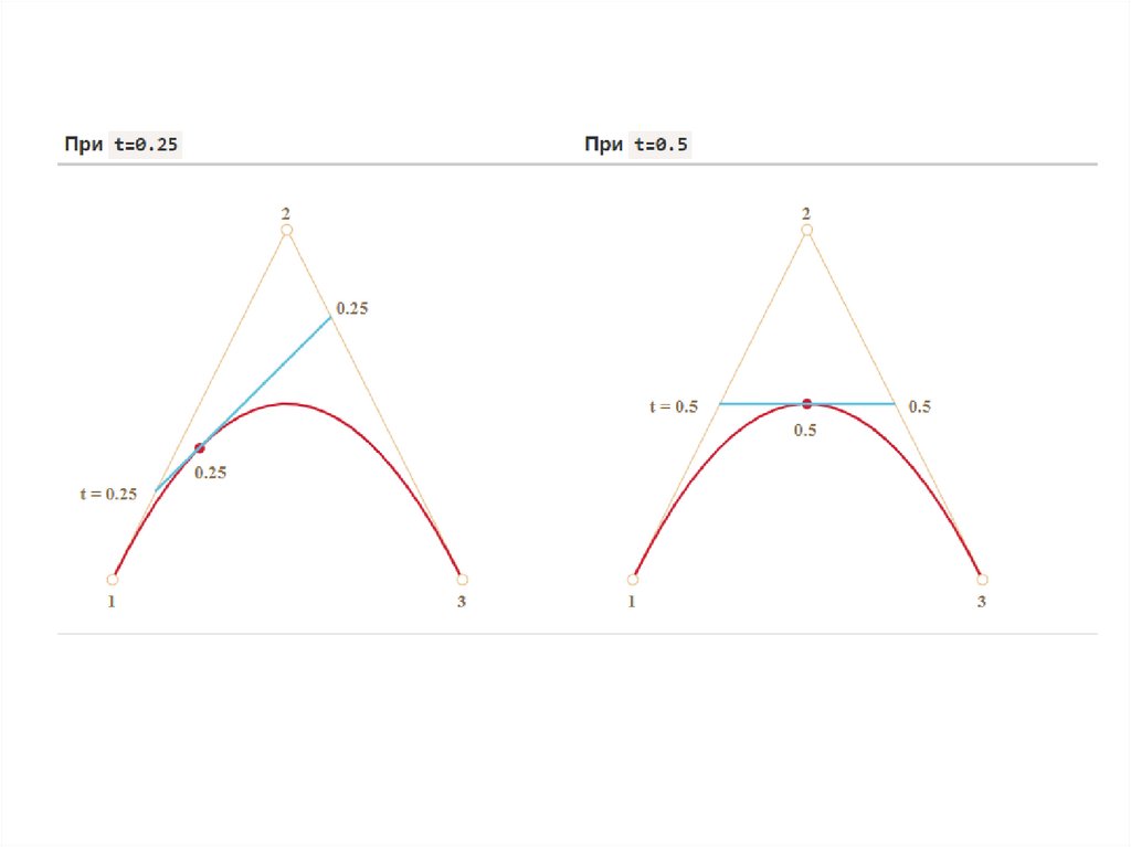 образует кривую Безье. Она красная и имеет параболическую форму на картинках