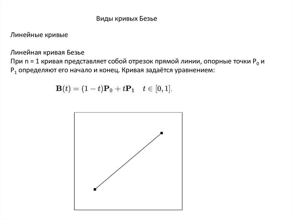 При n = 1 кривая представляет собой отрезок прямой линии, опорные точки P0 и