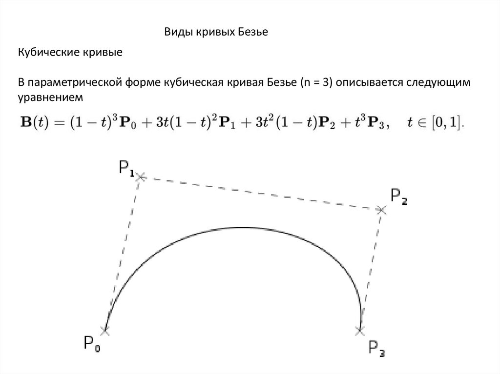 В параметрической форме кубическая кривая Безье (n = 3) описывается следующим