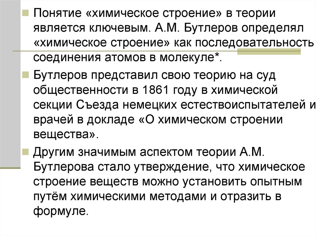 Понятие «химическое строение» в теорииявляется ключевым. А.М. Бутлеров определял