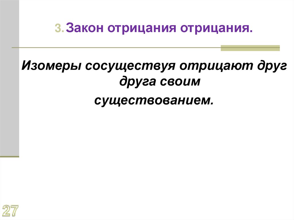3. Закон отрицания отрицания.Изомеры сосуществуя отрицают друг