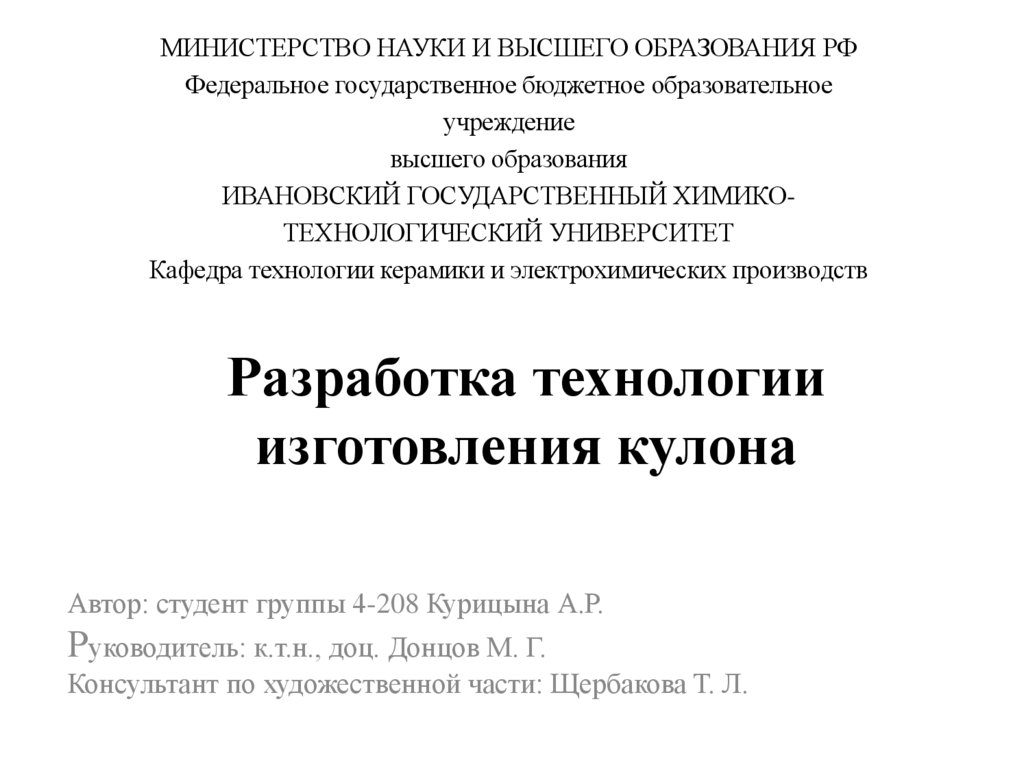 образованияИВАНОВСКИЙ ГОСУДАРСТВЕННЫЙ ХИМИКОТЕХНОЛОГИЧЕСКИЙ УНИВЕРСИТЕТ