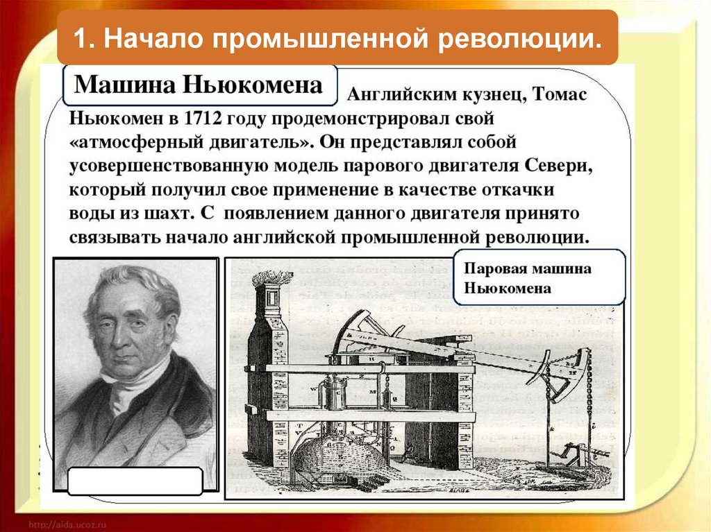 1. Начало промышленной революции.• в Англии братья Т. и Д.
