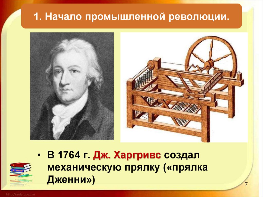 1. Начало промышленной революции.• В 1764 г. Дж. Харгривс создал