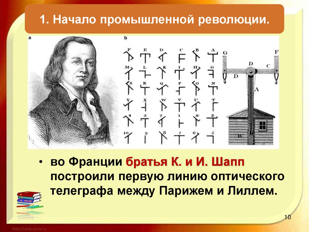1. Начало промышленной революции.• во Франции братья К. и И. Шапп