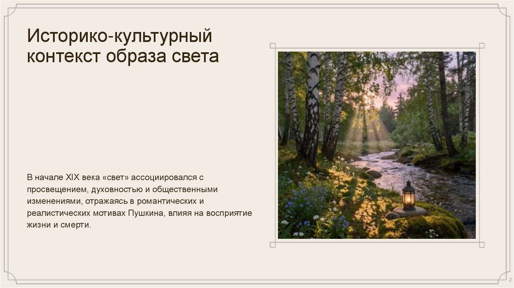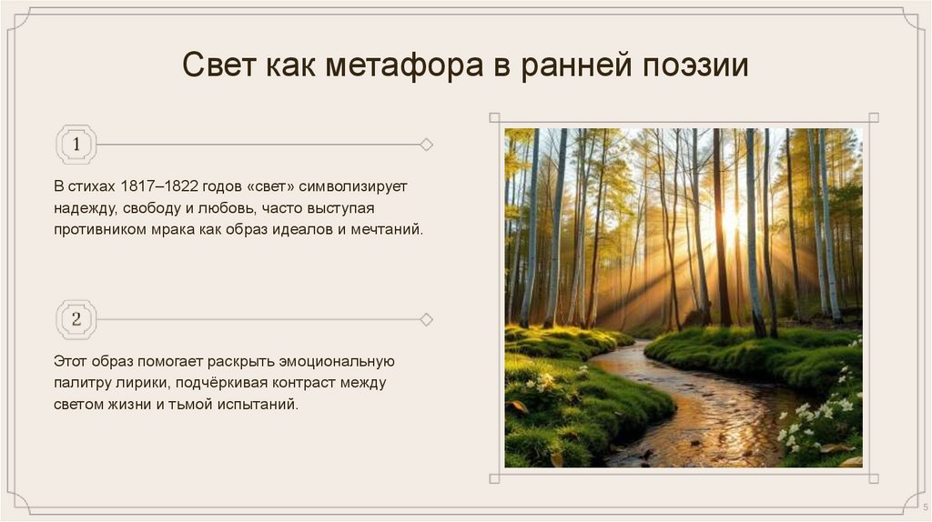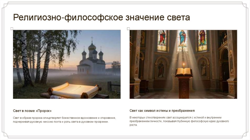 «свет» раскрывается как духовная сила и источник вдохновения.