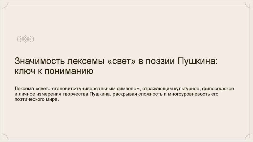 Значимость лексемы «свет» в поэзии Пушкина:ключ к пониманию