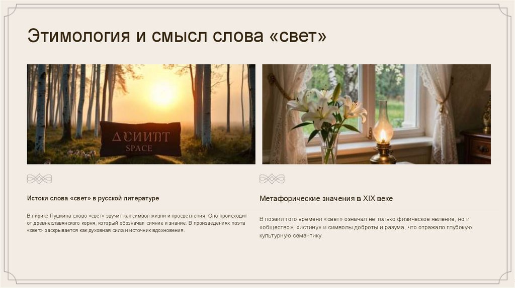 Этимология и смысл слова «свет»Истоки слова «свет» в русской литературе