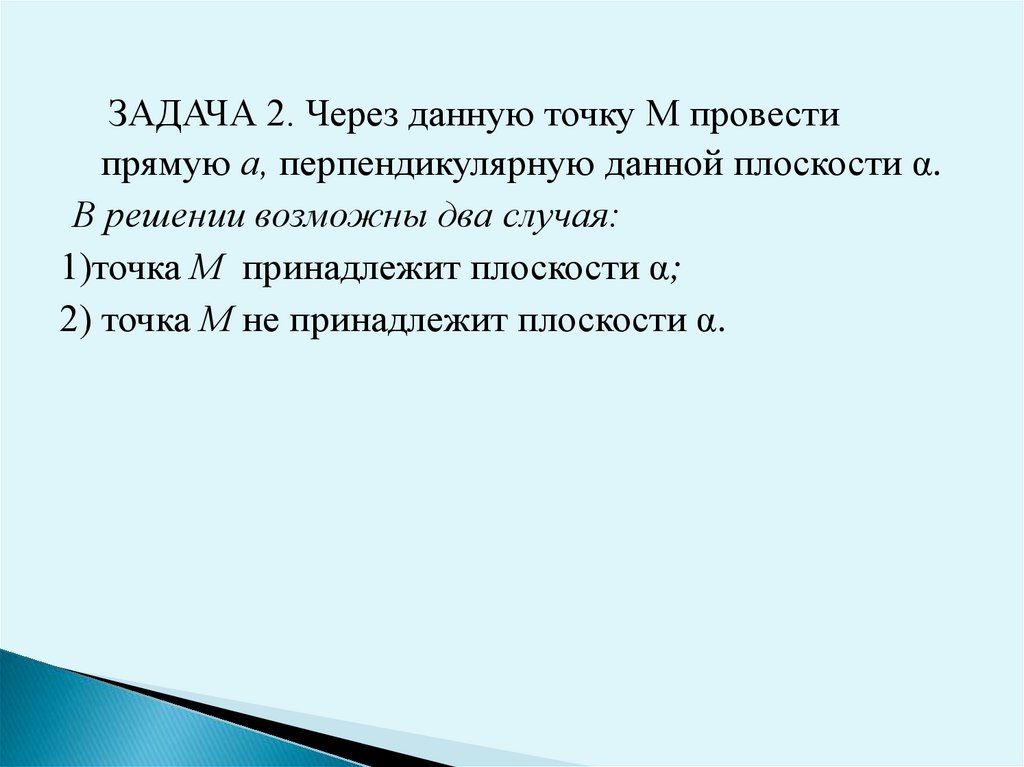 ЗАДАЧА 1. Через данную точку М провестиплоскость ɑ, перпендикулярную данной