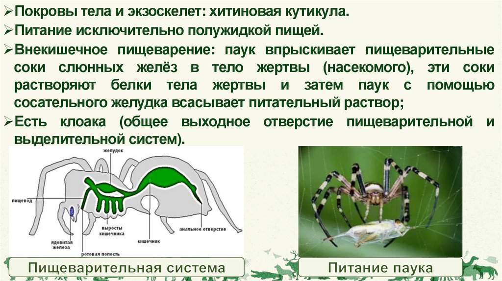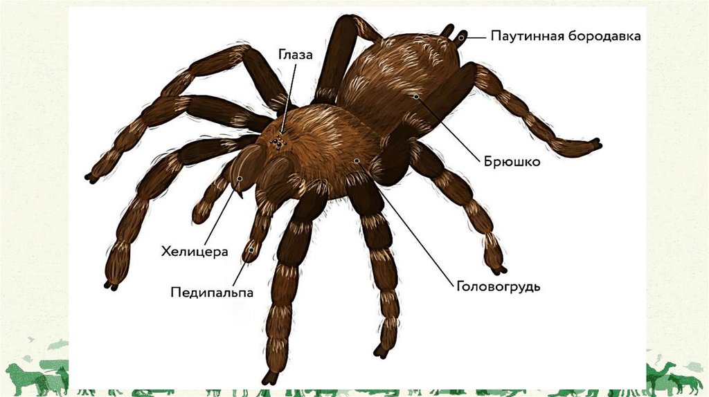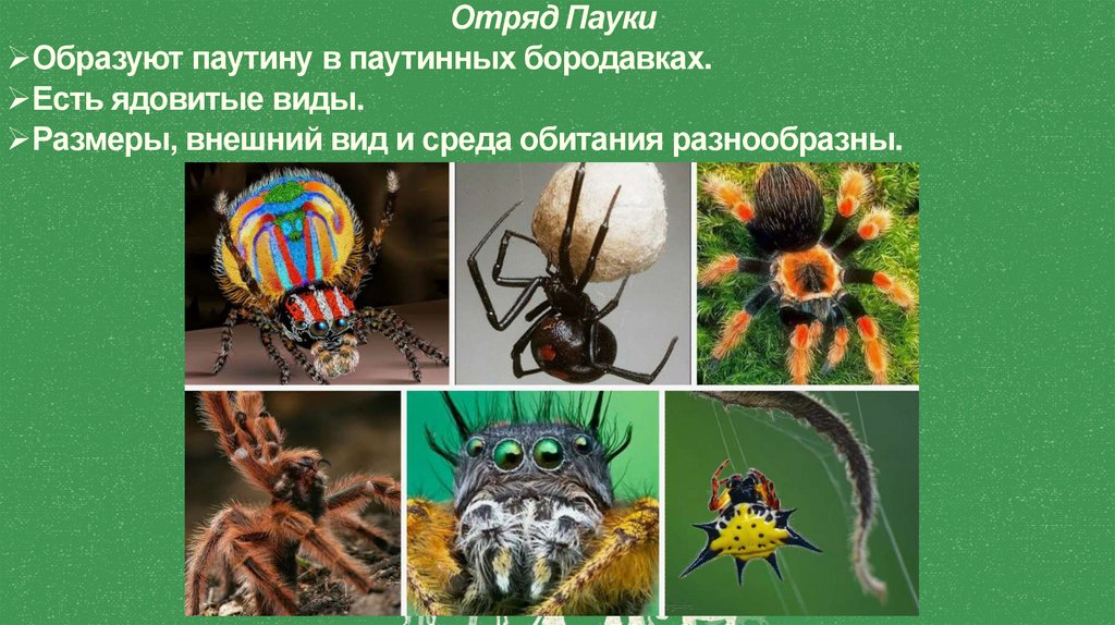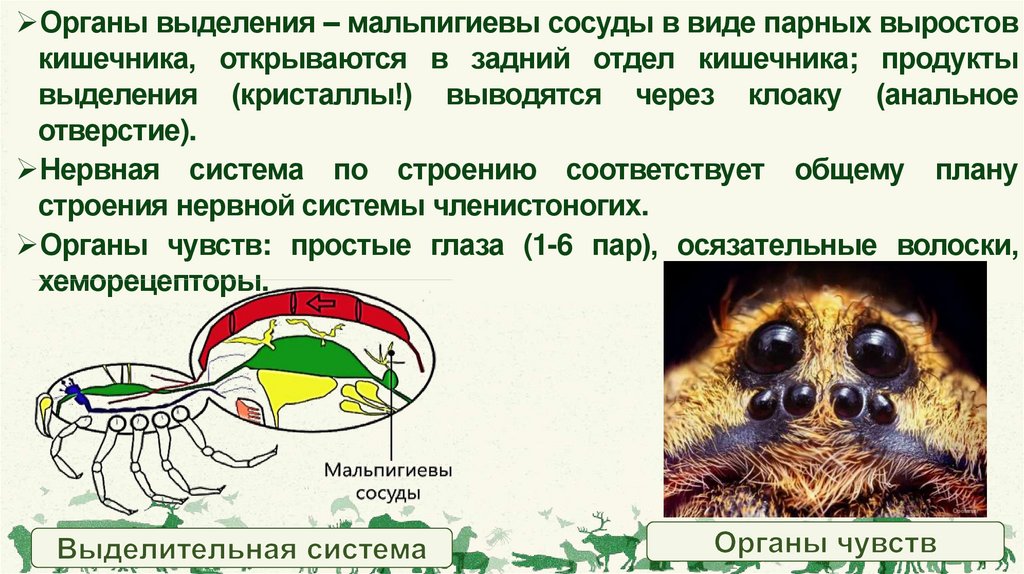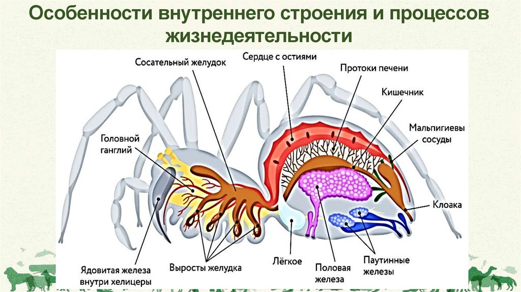 пауков и клещей (вырабатывают липкий секрет – паутину) и органы