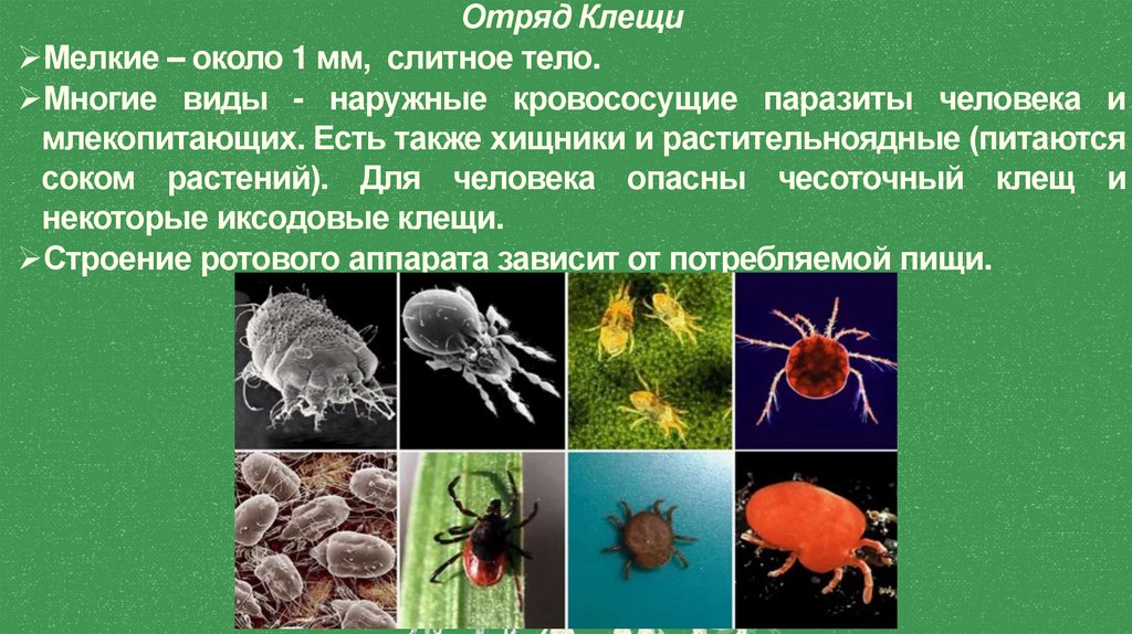 соком растений). Для человека опасны чесоточный клещ и