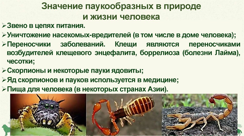 Значение паукообразных в природеи жизни человека