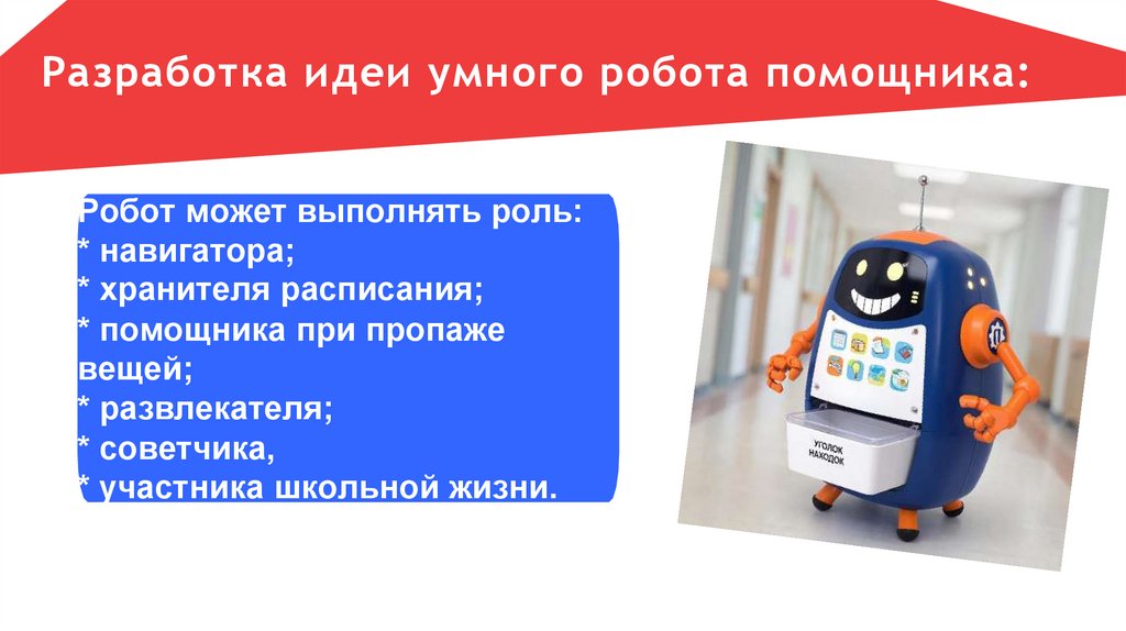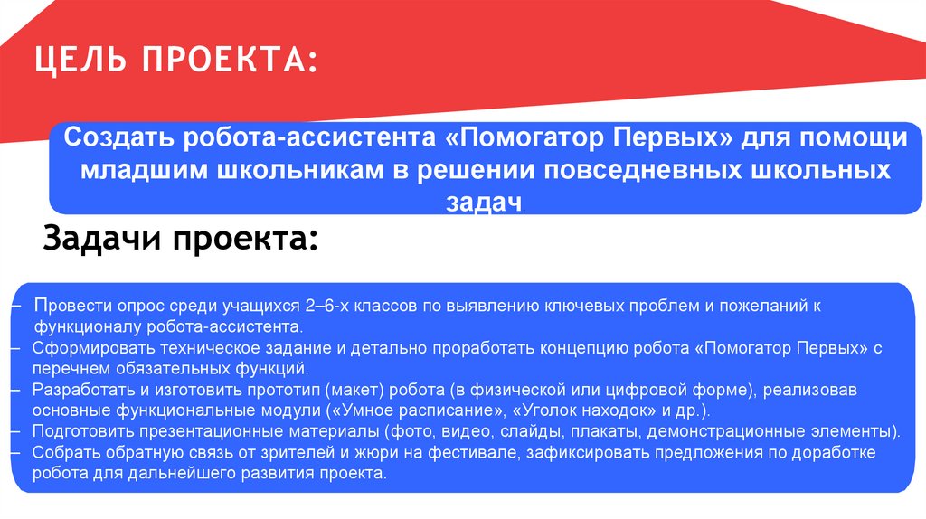 – Сформировать техническое задание и детально проработать концепцию робота «Помогатор Первых» с