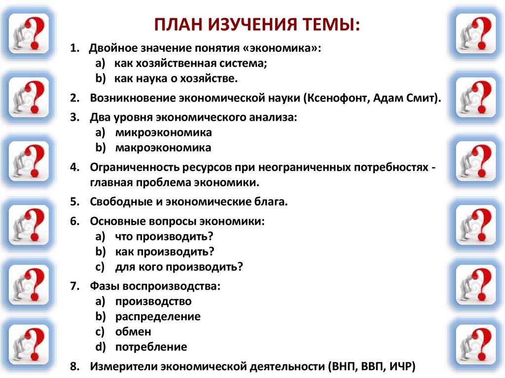 ПЛАН ИЗУЧЕНИЯ ТЕМЫ:1. Двойное значение понятия «экономика»: