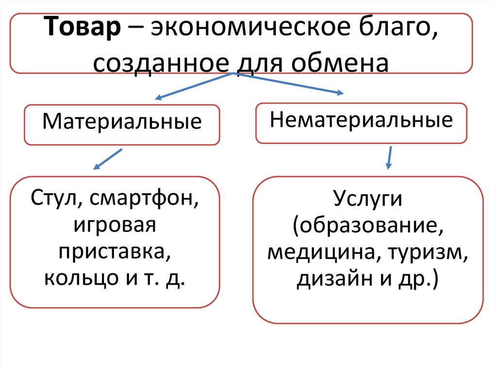 ТОВАР (goods) – овеществленный результат производства.