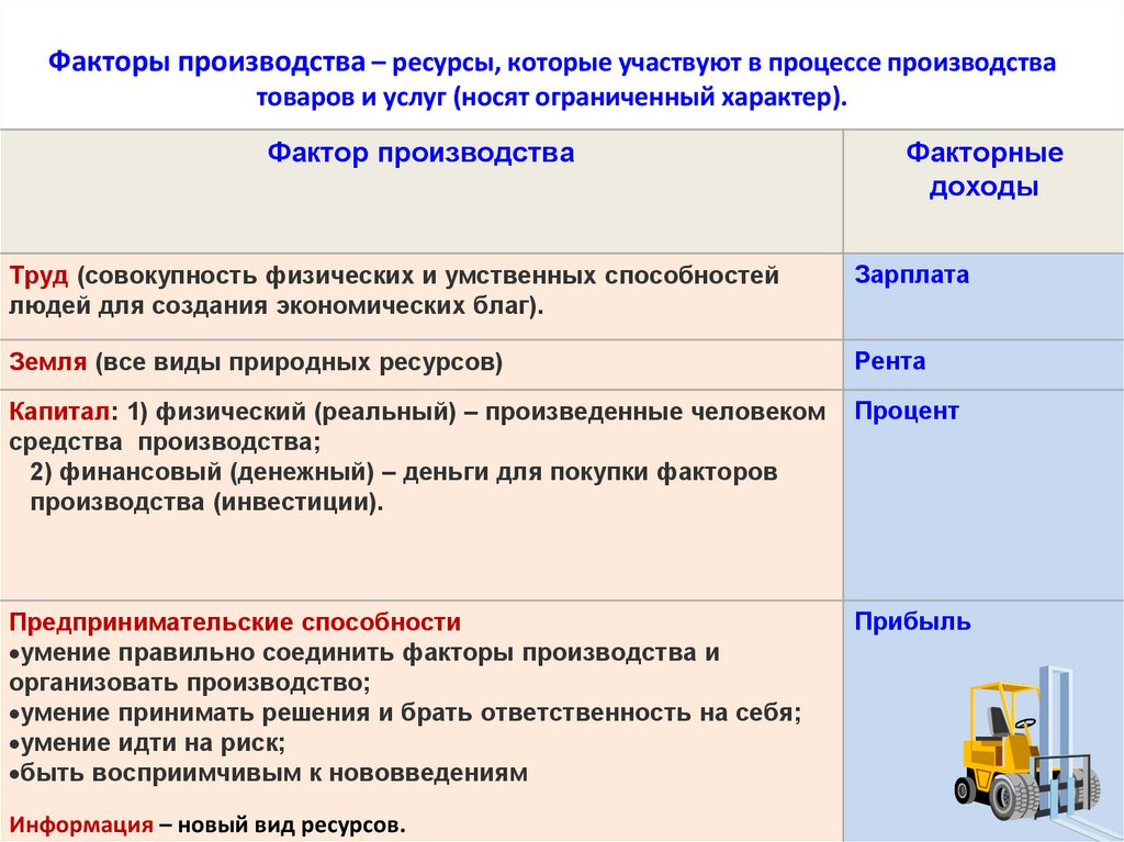 факторов производства.