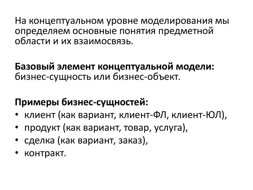 На концептуальном уровне моделирования мыопределяем основные понятия предметной