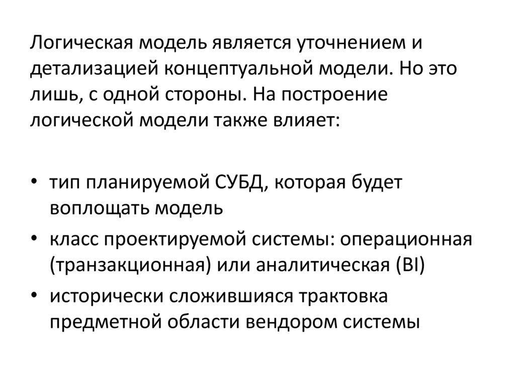 • Логический -► логическая модель