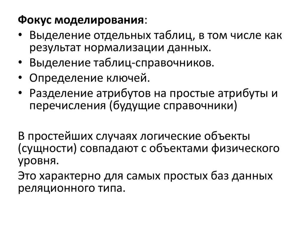 Фокус моделирования:• Выделение отдельных таблиц, в том числе как