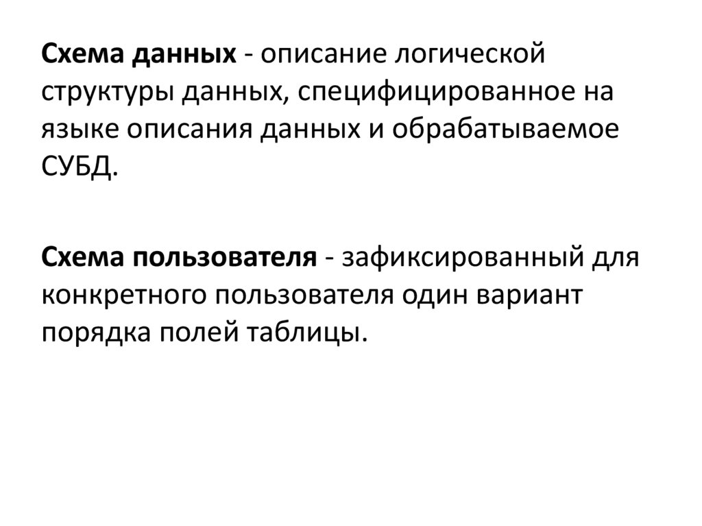 Схема данных - описание логическойструктуры данных, специфицированное на