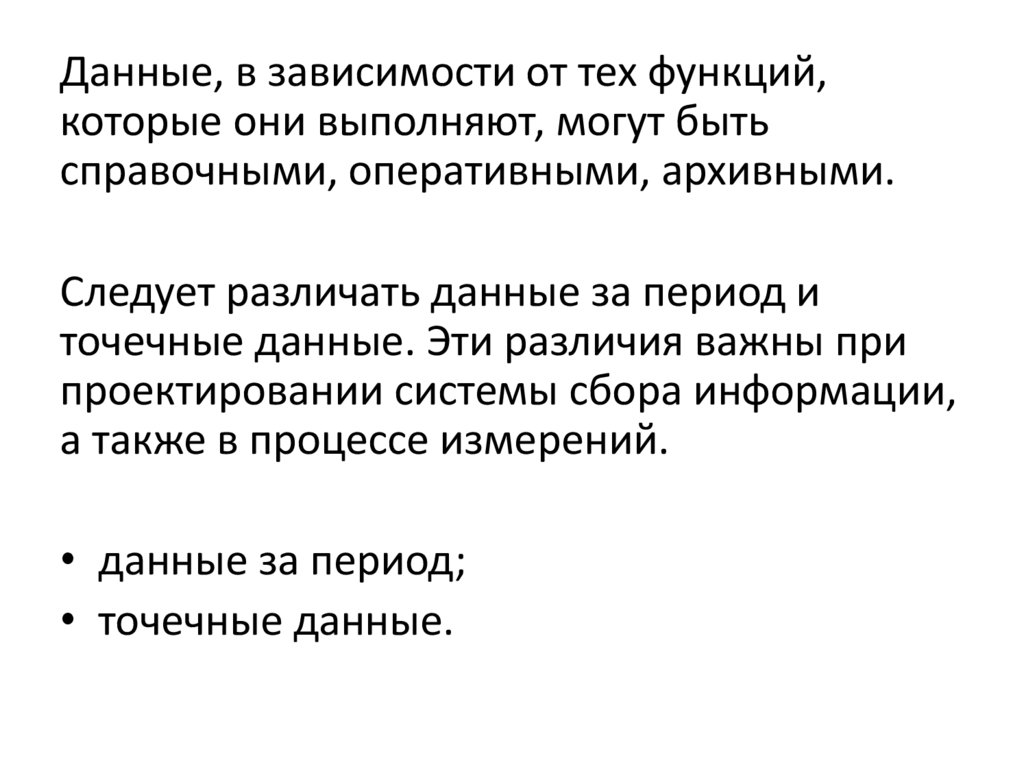 Данные, в зависимости от тех функций,которые они выполняют, могут быть